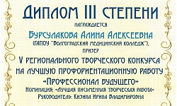 Дипломом 3 степени награждена Бурсулакова Алина студентка групп Ф-11, Сертификат участника вручен Чибуткиной Елизавете студентке группы М-22д в номинации «Лучшая письменная творческая работа» - представление эссе о личностных качествах, необходимых специалисту в профессиональной деятельности.