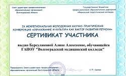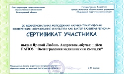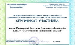 По итогам конференции студенты ГАПОУ "Волгоградский медицинский колледж" отмечены сертификатами участников.