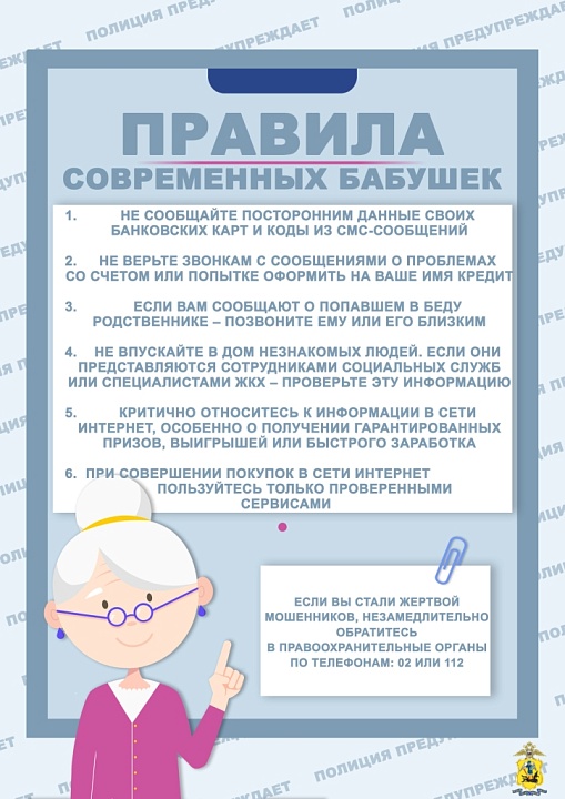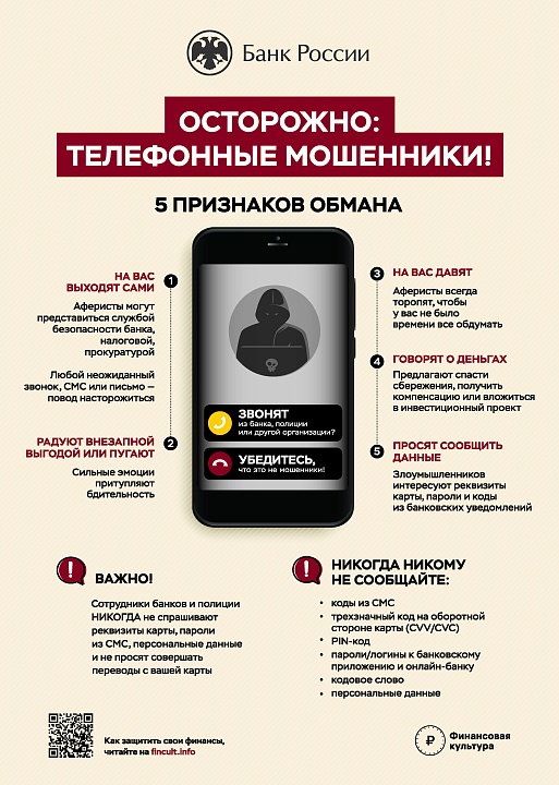 С каждым годом мошенники придумывают все более изощренные схемы отъема денег. Вот простые рекомендации, соблюдение которых поможет Вам сохранить деньги и ценности.