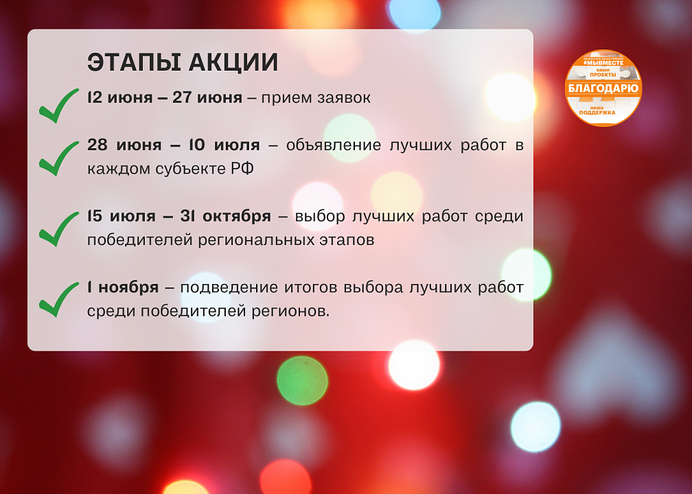 12 июня 2022 года, в рамках проведения Международной Премии #МЫВМЕСТЕ-2022, стартовала акция «Благодарю!».