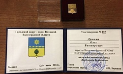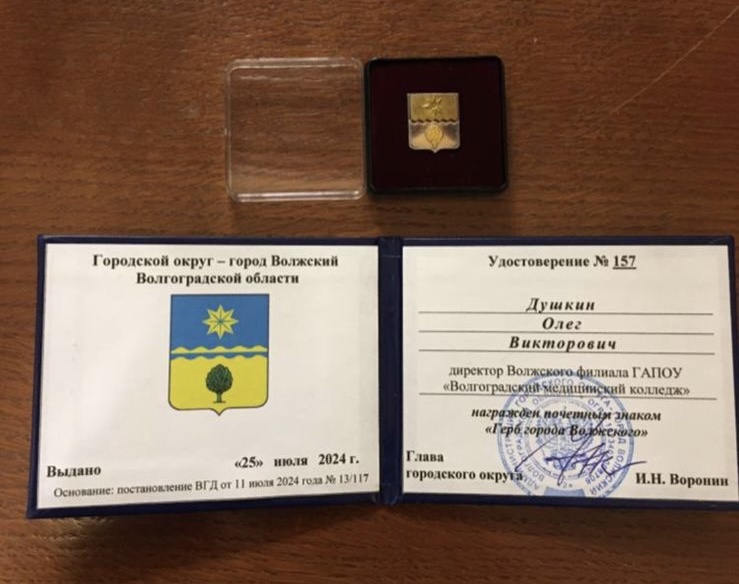 В год 70-летия города Волжского на 30-ой ежегодной церемонии вручения городских наград Душкин Олег Викторович награжден Почетным знаком «Герб города Волжского».