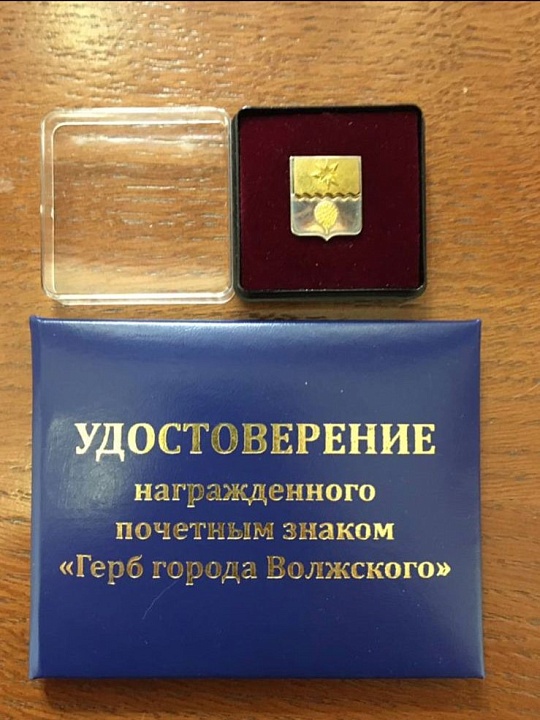 Обладателями почетного знака стали 8 человек. «Герб города Волжского» является знаком особого отличия и формой поощрения граждан за выдающийся вклад в экономику, науку, культуру, искусство, воспитание, просвещение, охрану здоровья, жизни и прав граждан, развитие местного самоуправления, благотворительную деятельность и иные заслуги перед городом и его жителями.