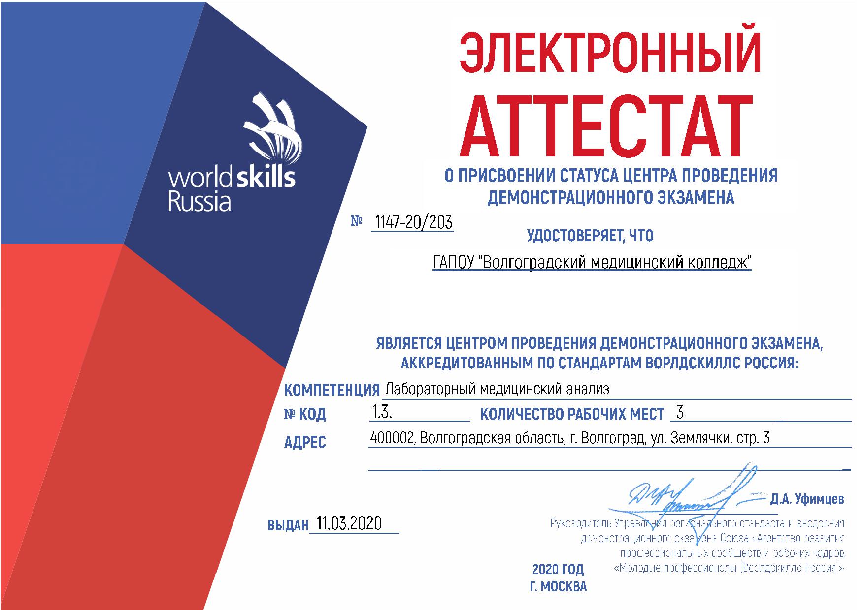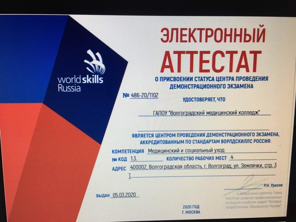 В ГАПОУ "Волгоградский медицинский колледж" 01.06.2022 и 04.06.2022 в рамках промежуточной аттестации прошел демонстрационный экзамен по стандартам Ворлдскиллс Россия по компетенции 41 Медицинский и социальный уход. В испытании принимали участие 23 студента специальности Сестринское дело, группы М-12д.
