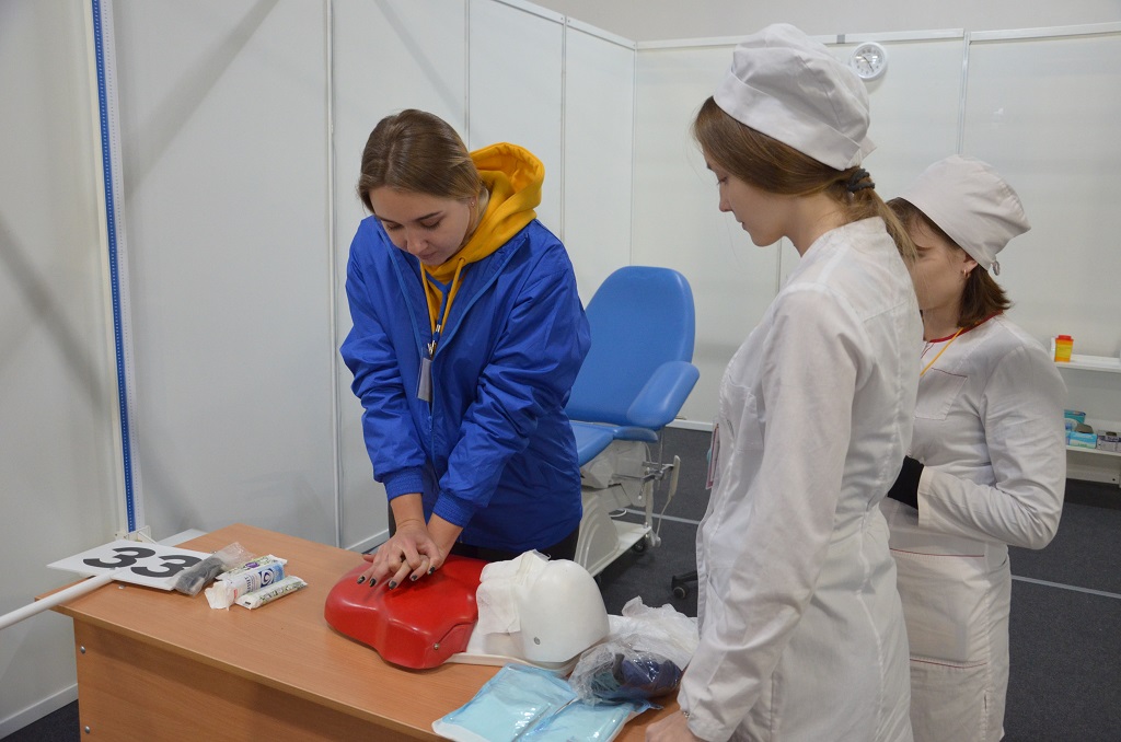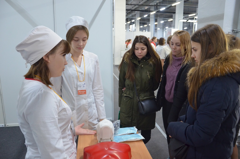 15 ноября в рамках деловой программы V Открытого регионального чемпионата «Молодые профессионалы (WorldSkills Russia)» Волгоградской области студенты под руководством преподавателей организовали и провели профессиональные пробы (мастер - классы) по компетенции Медицинский и социальный уход для учащихся школ-посетителей площадок Чемпионата на стадионе «Волгоград Арена». 15 ноября в рамках деловой программы V Открытого регионального чемпионата «Молодые профессионалы (WorldSkills Russia)» Волгоградской области студенты группы М -945: Бут Виктория, Килякова Екатерина, Котлова Евгения, Семакина Юлия под руководством преподавателя Подуруевой М. В и студенты группы М -947д: Бутенко Екатерина, Иванова Мария, Сахарова Мария и Хайруллина Анжелика под руководством преподавателя Хархалис В. В. организовали и провели профессиональные пробы (мастер - классы) по компетенции Медицинский и социальный уход для учащихся школ-посетителей площадок Чемпионата на стадионе «Волгоград Арена».