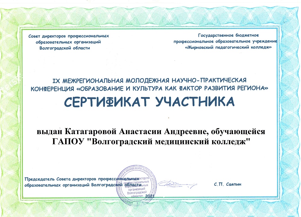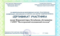 По итогам конференции студенты ГАПОУ "Волгоградский медицинский колледж" отмечены сертификатами участников.
