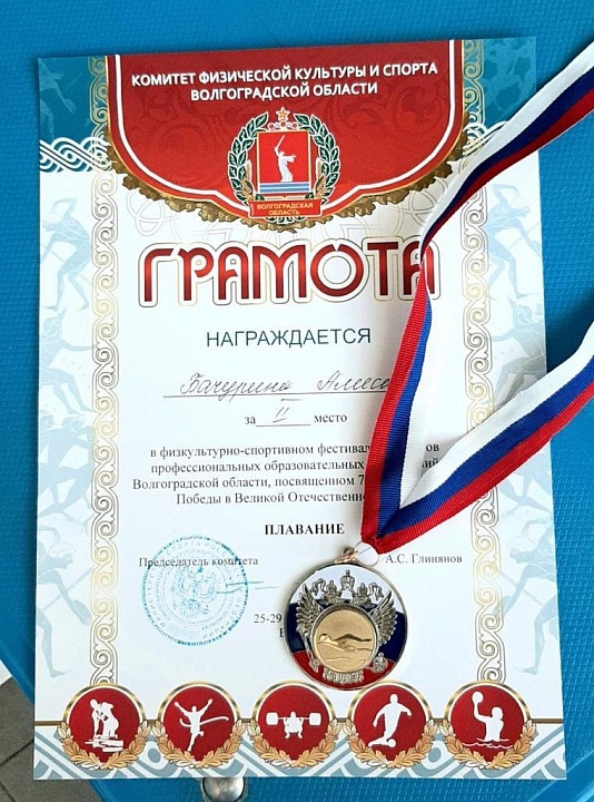 26.04.2022 г. состоялись соревнования по плаванию в рамках физкультурно-спортивного фестиваля студентов профессиональных образовательных организаций Волгоградской области, посвящённые 77 годовщине победы в Великой Отечественной Войне. Наш колледж достойно представляли студентки специальности Сестринское дело. Бачурина Алиса (М-922) и Исайкина Александра (М-933). В дистанции 50 м . брасс, Бачурина Алиса заняла почётное 2 место! Поздравляем! Молодцы!